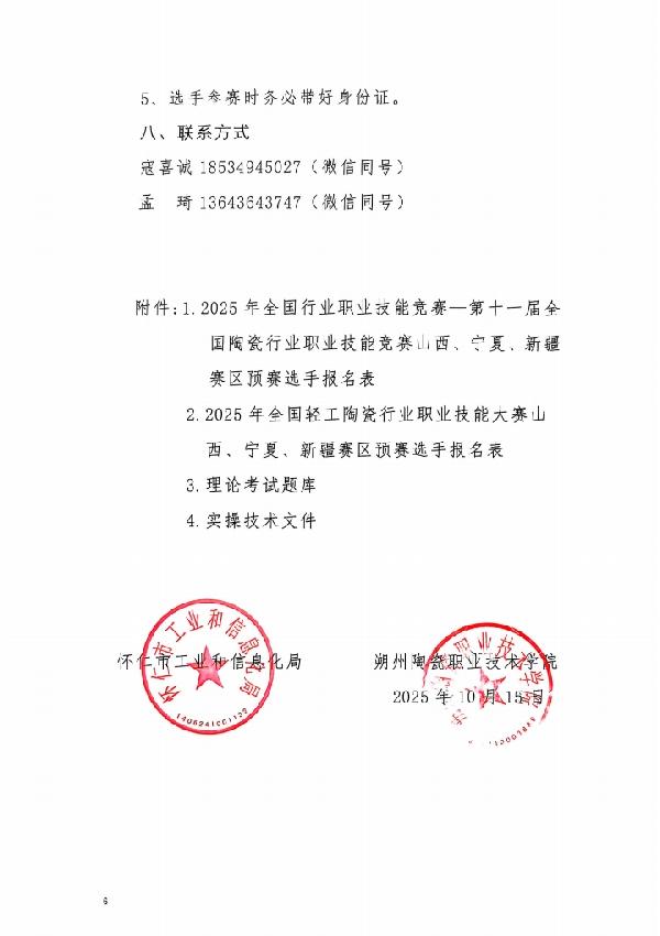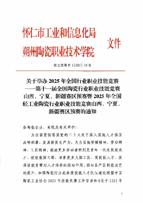 (附件1)2025年全国行业职业技能竞赛—第十一届全国陶瓷行业职业技能竞赛山西、宁夏、新疆赛区预赛选手报名表