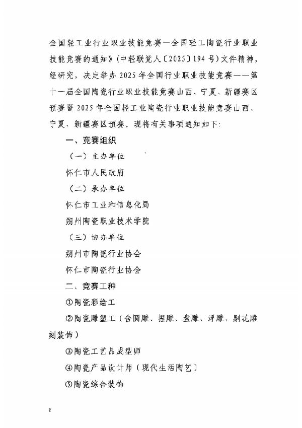 (附件2)2025年全国轻工陶瓷行业职业技能大赛山西、宁夏、新疆赛区预赛选手报名表